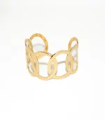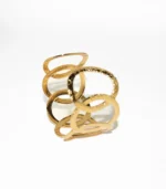 Crafted in a high-shine gold tone, the bangle strikes the perfect balance between architectural structure and fluid femininity, making it a standout piece for those who favor timeless designs with contemporary flair. Whether worn solo or stacked, it becomes a conversation-starting centerpiece that elevates both daywear and evening ensembles.