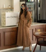 Featuring a sharp collar, a full-length button placket, and deep, functional side pockets, it’s the ultimate throw-on-and-go piece. Wear it fully buttoned for a modest, sculptural look, or leave it open over wide-leg trousers for a layered, contemporary aesthetic.