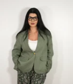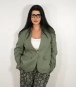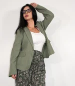 Elegantly crafted Olive Green Tailored Blazer, designed for the modern woman who seeks both style and comfort. Made from high-quality LINEN, breathable fabric, this versatile blazer offers a perfect balance between sophistication and casual flair.