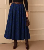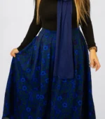 Elevate your wardrobe with the “Mirage Floral ” skirt—a striking fusion of bold pattern and refined silhouette. This high-waisted, pleated midi skirt features a rich cobalt blue base adorned with abstract leopard motifs in deep green, creating a rhythmic visual texture that moves with you. Crafted from a soft, structured fabric with a subtle sheen, it offers both elegance and comfort.