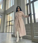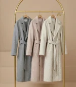 Available in three versatile shades — Gray for classic elegance, Dust Pink for a feminine touch, and Beige for neutral sophistication — this coat transitions seamlessly from casual daytime looks to polished evening outfits.