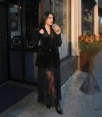 - Our models are also wearing the Black Geva Blazer, the Black Dota Belt, and the White Jane T-Shirt Sizes: S-M / M-L S-M: Length 40.2 in - Width 13.0 in M-L: Length 41.3 in - Width 13.4 in 100% Polyester Washing: Handwash only