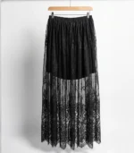 The Angila Lace Skirt is elegantly lace-trimmed with a comfortable elastic waistband and a flowy, unlined design, this long skirt exudes a fluid movement that will elevate any outfit.
